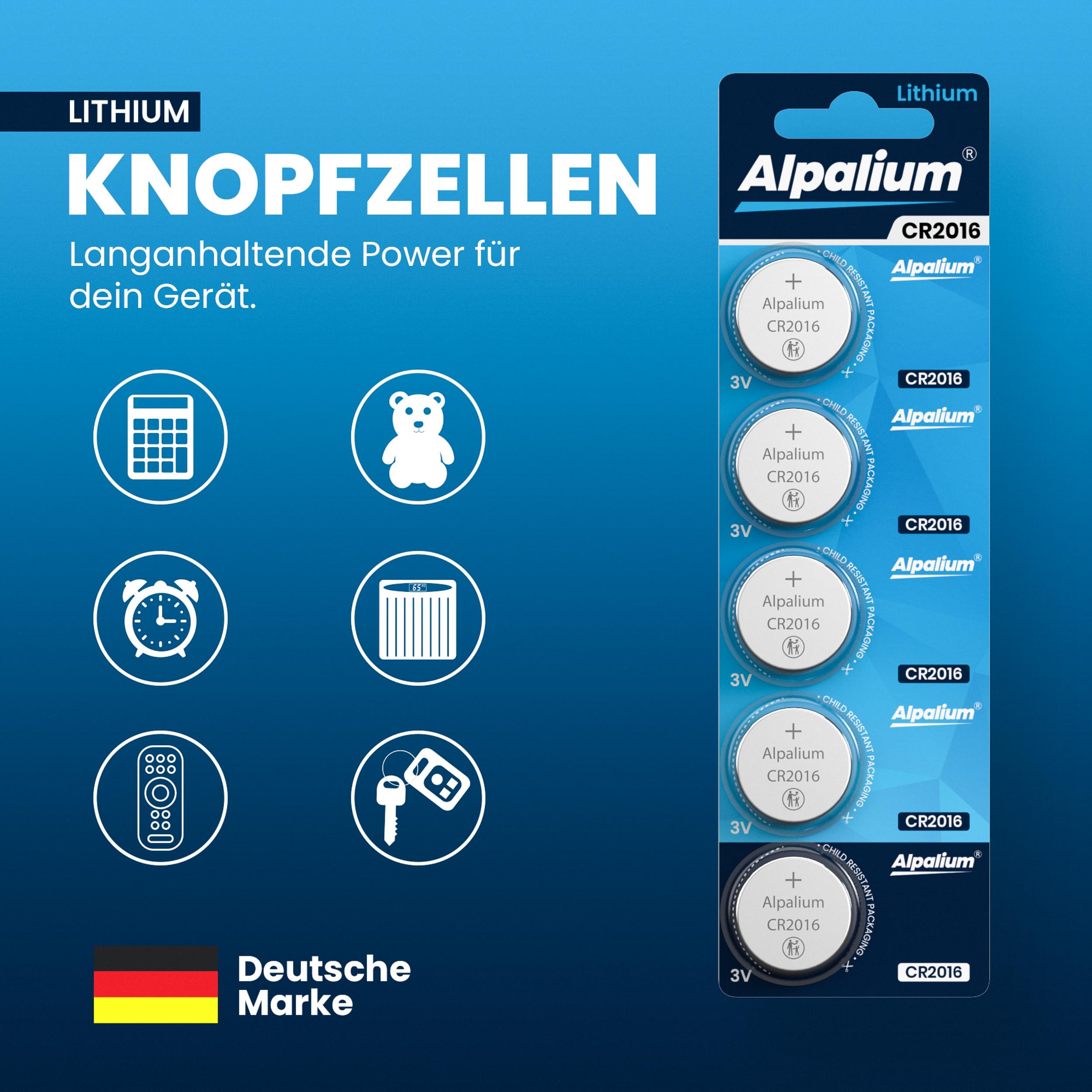 Product information "Alpalium CR2016 5er Blister Knopfzelle Lithium 3V für Fieberthermometer Uhren Alarmanlagen 15005016"