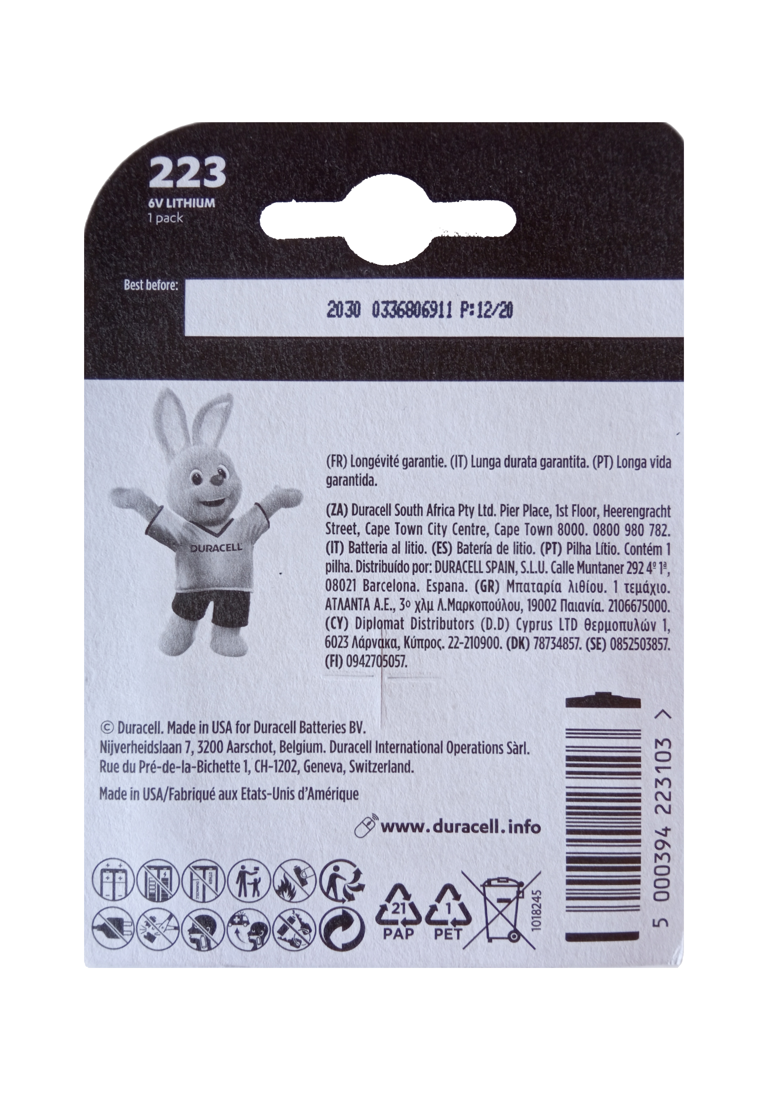 Duracell High Power Lithium 223 Foto-Batterien bestehen aus hochreinem Lithium für zuverlässige, dauerhafte Leistung für Ihre Fotogeräte. Sie haben eine Lagergewährleistung von bis zu 10 Jahren durch die Technologie Duralock Power Preserve, daher können Sie darauf vertrauen, dass diese Foto-Batterien einsatzbereit sind, wenn Sie sie brauchen.