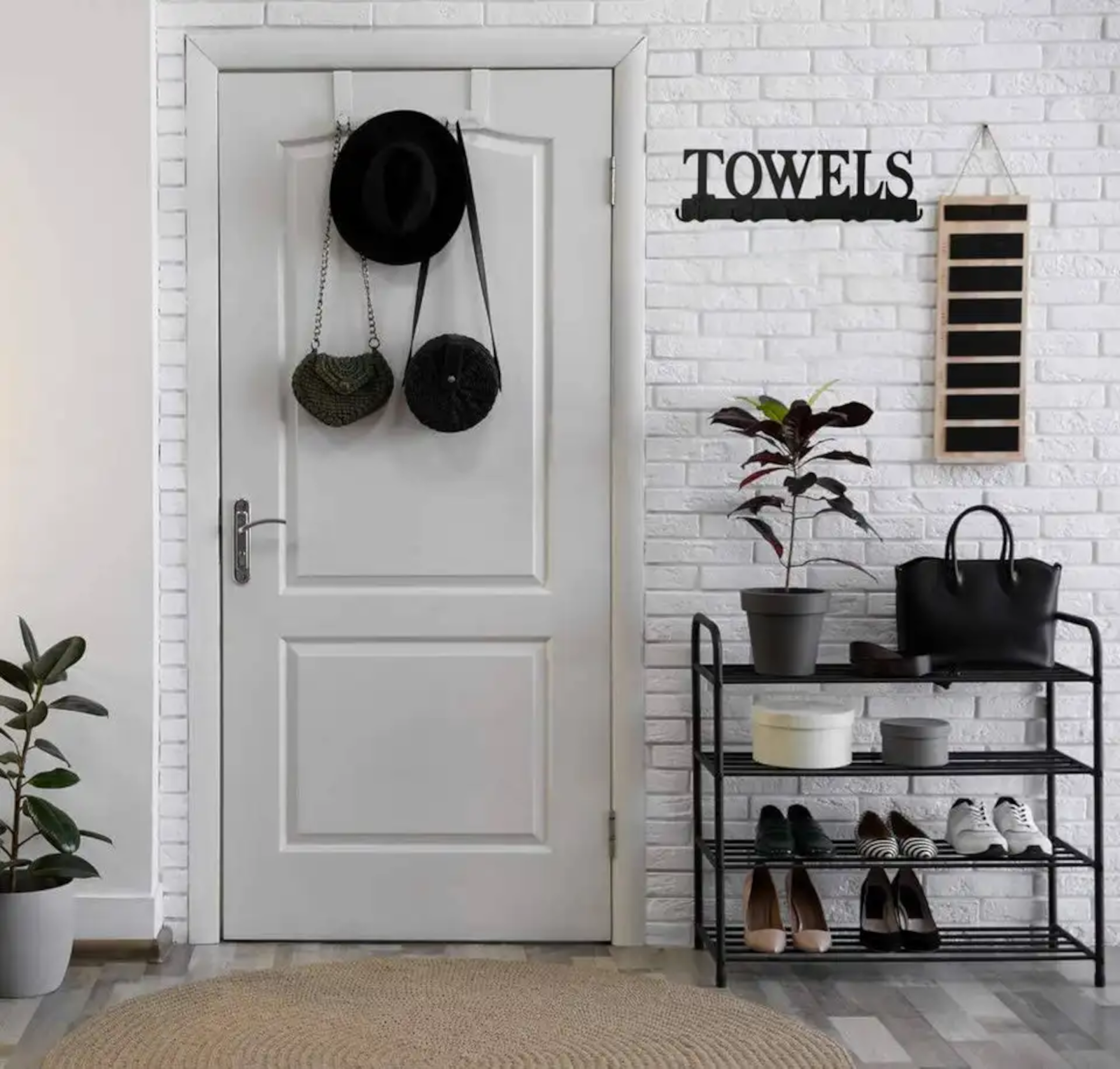 Product information "EWANTO Handtuchhalter "Towels" Schwarz mit 5 Haken Dekoration Türhakenaufhänger Badezimmer Küche Bad Halterung für Handtücher Bademantel Hut Schlüssel Outdoor Pool TA-01"