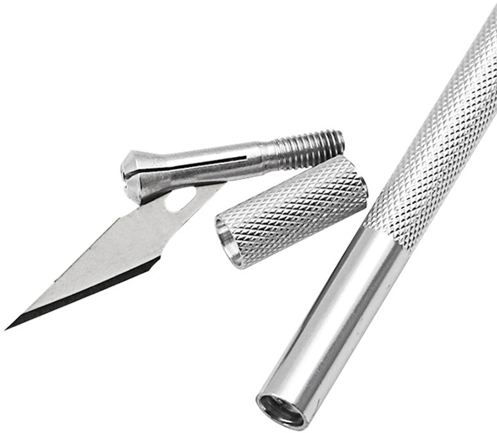 Das Skalpell, erhältlich in mehreren Farbvarianten, eignet sich ideal für den Einsatz im Bastelbereich und schneidet verschiedene Materialien wie Papier und Plastik. Die sehr scharfe Klinge sorgt für saubere Kanten, und der Griff ist mit einer Antirutschfunktion ausgestattet. Das Skalpell kann in vier separate Teile zerlegt werden, um die Klinge zu wechseln. Die fünf Ersatzklingen sind sicher in einer Plastikbox verpackt, und das Skalpell ist mit einer Plastikhülle ausgestattet, um die Originalklinge vor dem Abstumpfen zu schützen.