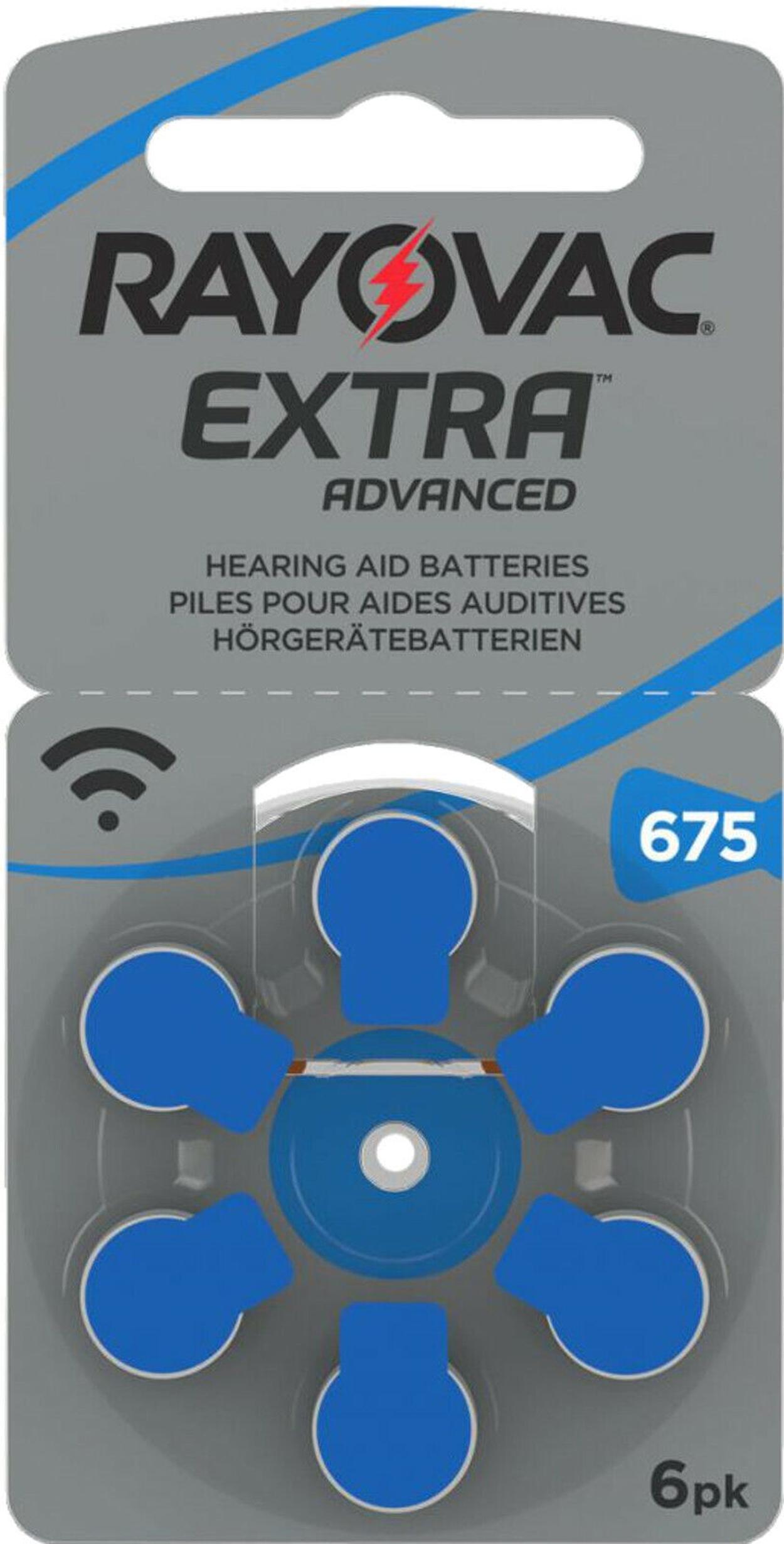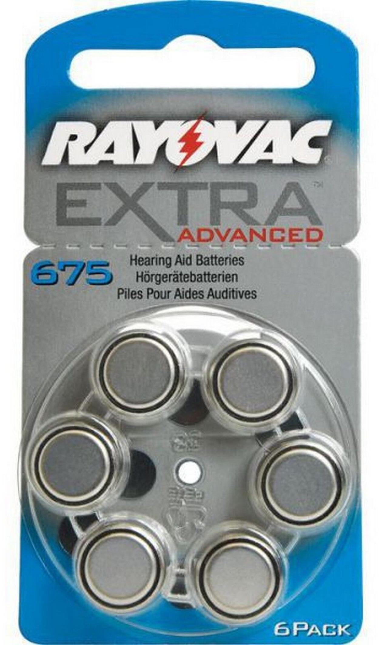 Product information "Rayovac 1000x Extra Advanced Gr. 675 Hörgerätebatterien 6er Blister PR44 Blau 24600 675AUX-6XEMF"