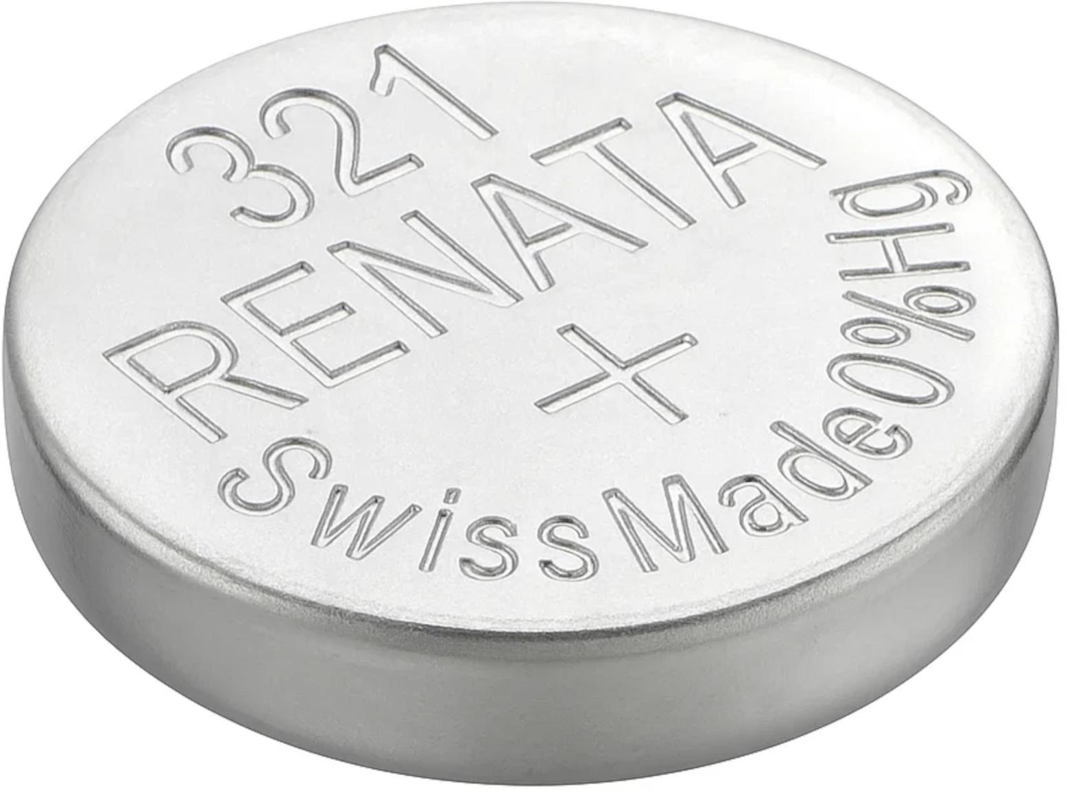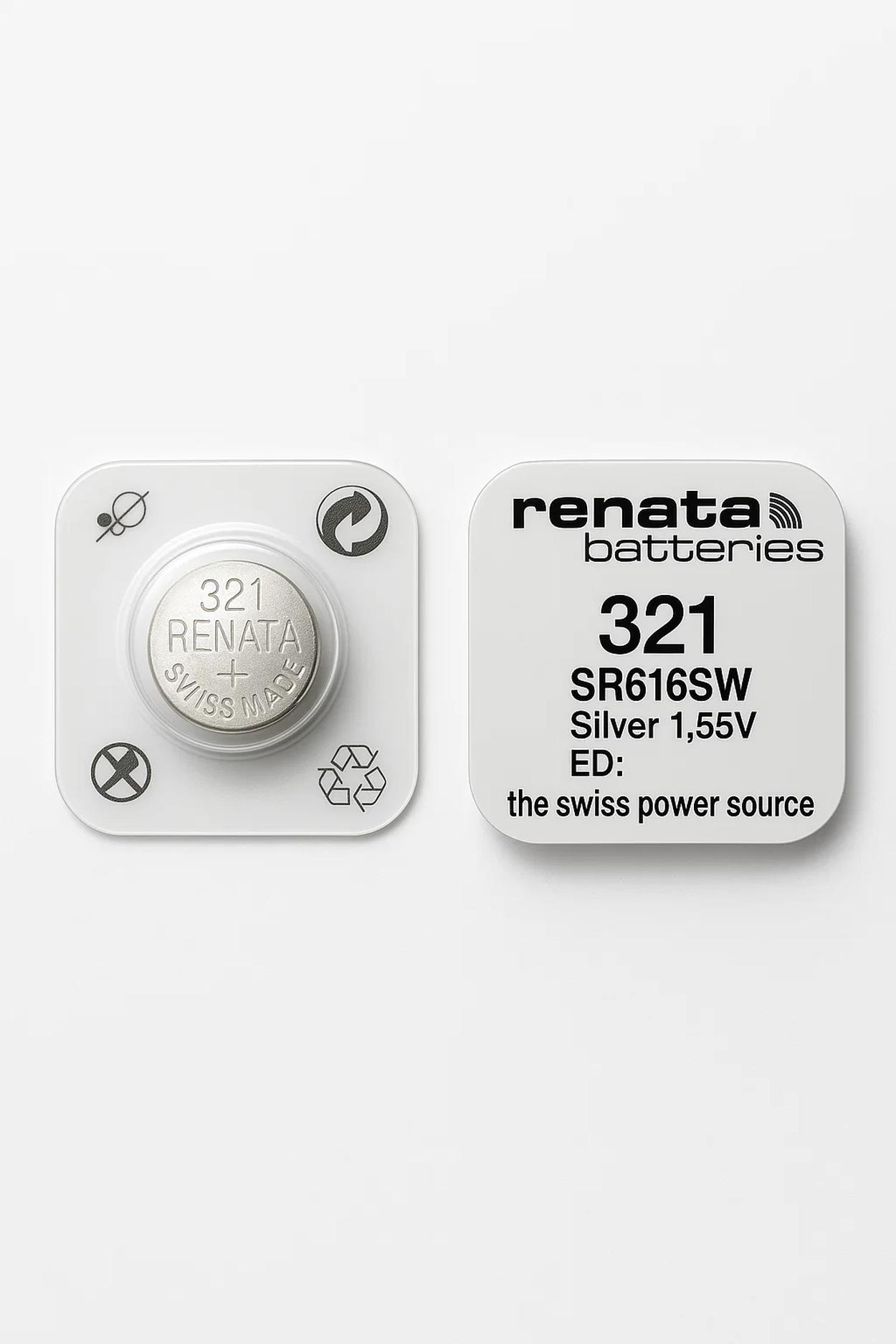 Die Renata 321 (SR616SW) ist eine hochwertige Silberoxid-Knopfzelle mit einer Spannung von 1,55 Volt. Sie gehört zur High-Drain-Kategorie („W“) und ist speziell für Geräte mit höherem Energiebedarf entwickelt – ideal für Armbanduhren mit Beleuchtung, Multifunktionsuhren sowie Messgeräte. Als Teil der Swatch Group produziert Renata seine Batterien.