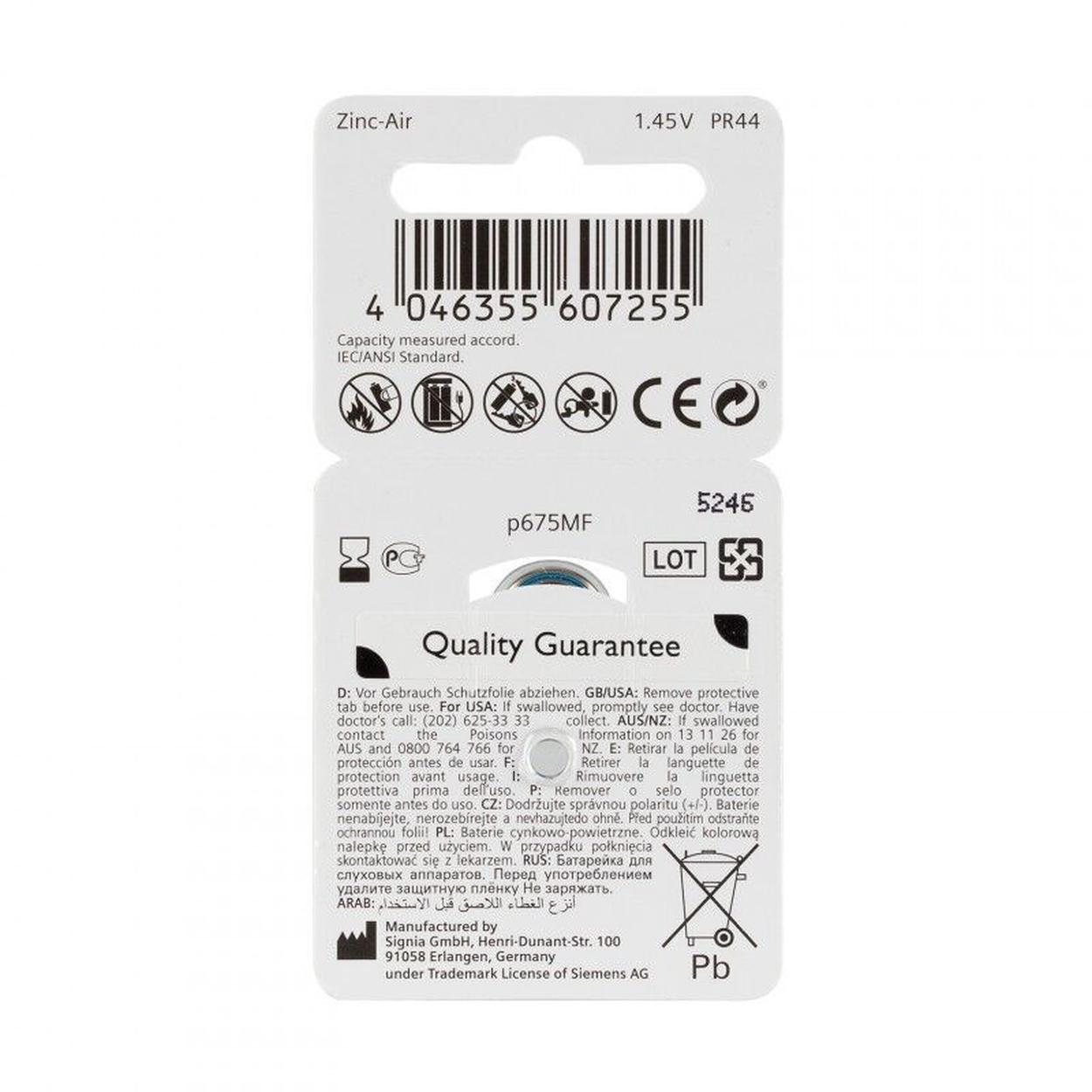 Product information "Signia Gr. 675 Hörgerätebatterien 6er Blister PR44 Blau 24600 Sig675 24600313436"