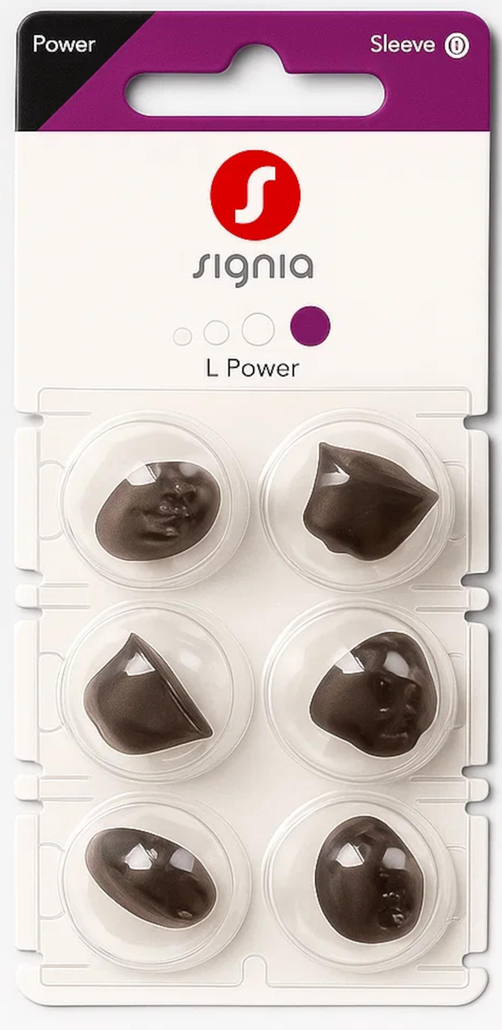 Product information "Signia Sleeve 3.0 Power L Domes 6er Blister Lila Hörgeräteschirmchen Silikon 10997199"