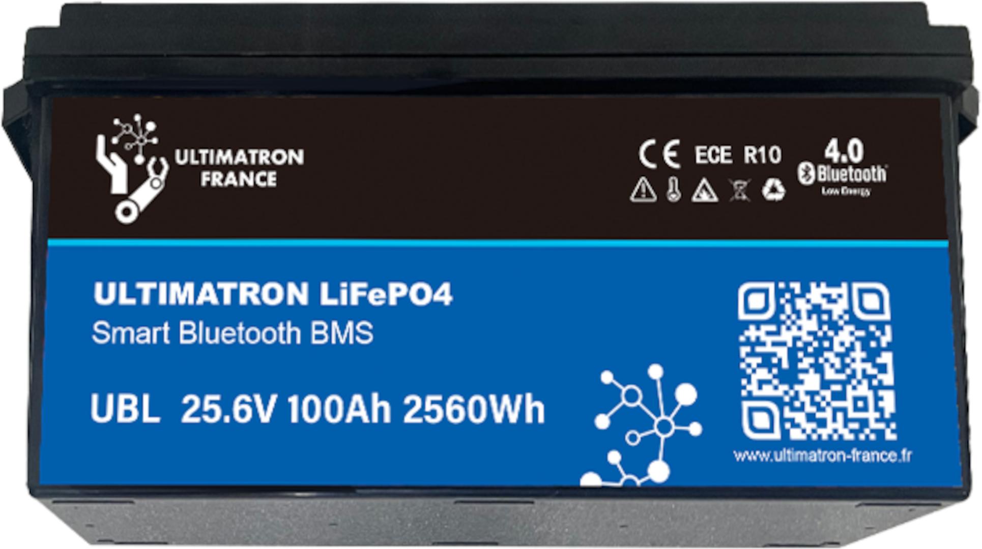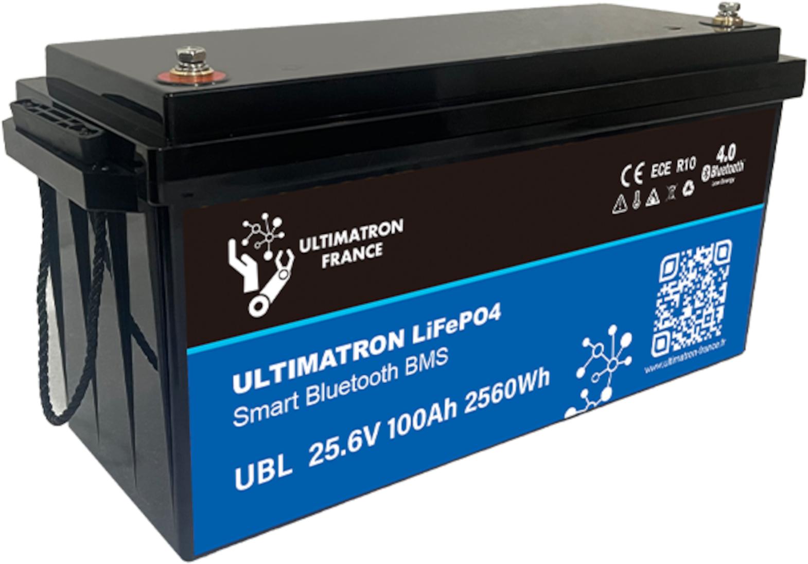 Die Ultimatron LiFePO₄-Batterie mit Nennspannung von 25,6 V und einer Kapazität von 100 Ah (≈ 2,56 kWh) verbindet modernste Lithium-Eisen-Phosphat-Technologie mit integriertem „Smart BMS“ (Battery Management System) und Bluetooth-Überwachung. Damit ist sie bestens geeignet für mobile Einsatzbereiche wie Wohnmobile, Boote, Solaranlagen oder netzunabhängige Energieversorgung, bei denen stabile Spannung, hohe Zyklenfestigkeit und smarte Überwachung gefragt sind. Besonderheiten & Vorteile: Sichere Technologie: Die LiFePO₄-Chemie bietet gegenüber vielen traditionellen Batterietechnologien eine höhere thermische Stabilität und somit geringeres Risiko von Brand oder Explosionsgefahr.