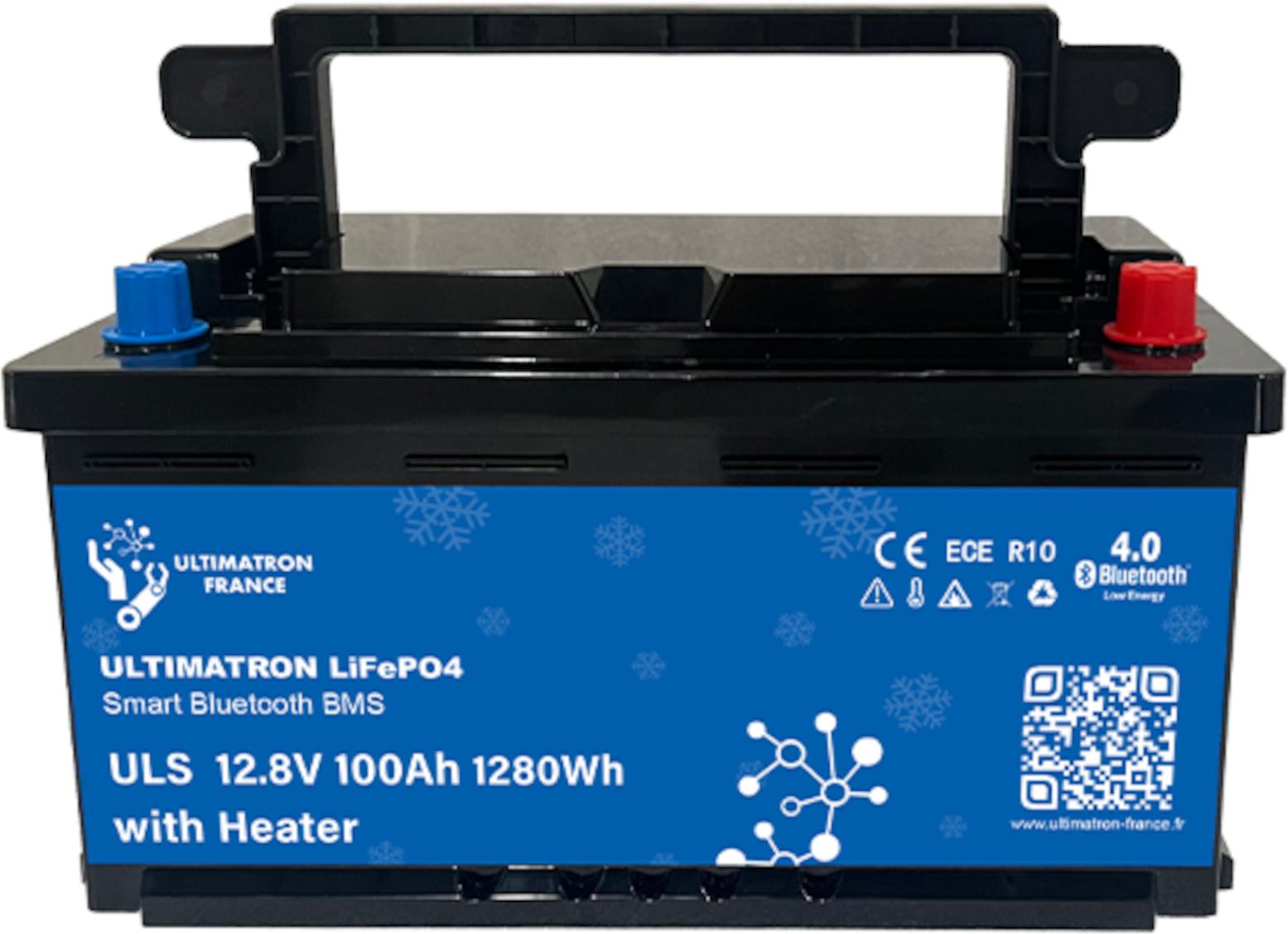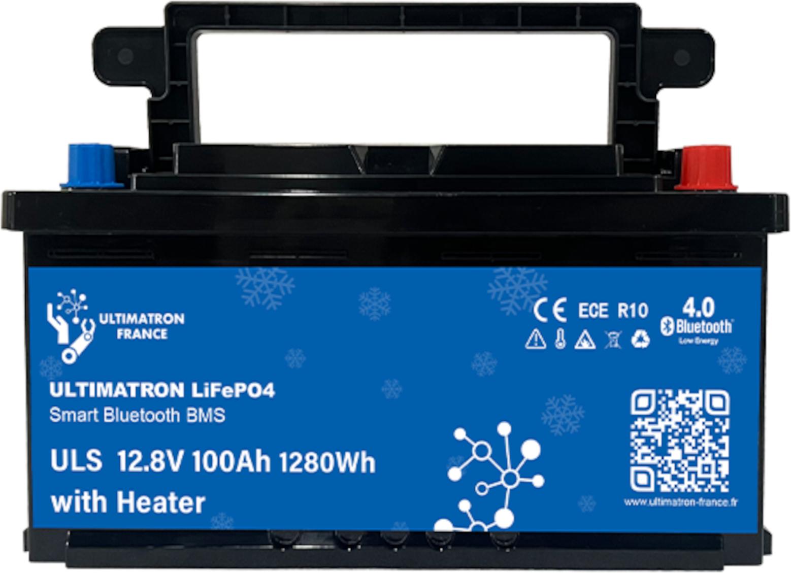 Ultimatron LifePo4 Lithiumbatterie 12,8 V 100Ah ULS-12-100H mit Bluetooth und Smart BMS integriert und Heizung Kunststoffgehäuse Batterie geeignet für den Einbau unter dem Sitz gem. § 12 Abs. 3 UStG ULS-12-100H