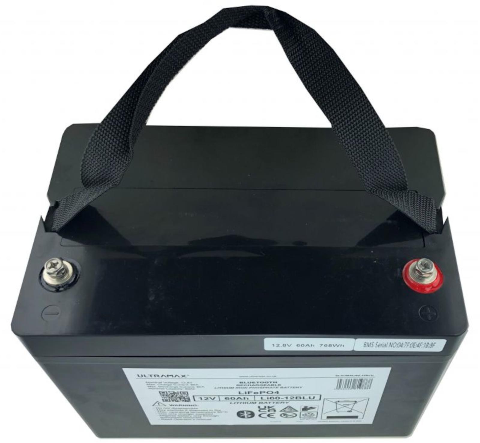 Product information "UltraMax SLAUMXLI60-12BLU – 12 V 60 Ah LiFePO₄-Batterie mit Bluetooth-Überwachung SLAUMXLI60-12BLU"