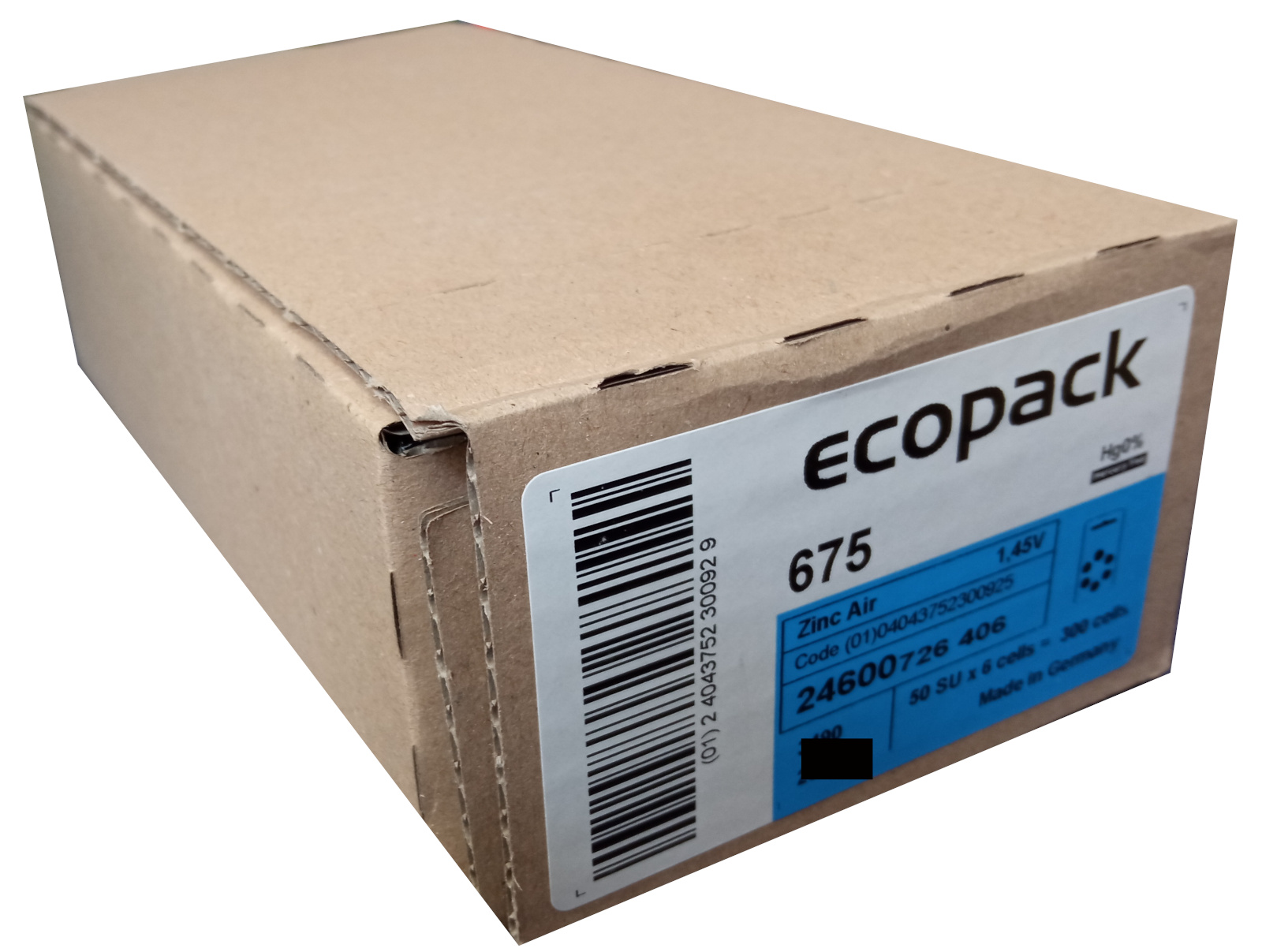 Die Varta Ecopack 675 / PR44 ist eine hervorragende und besonders zuverlässige Hörgerätebatterie. Die Knopfzelle hat einen Durchmesser von 5,80 mm. Sie ist nach PR44 kodiert und gehört dem Typ 675 an. Praktisch ist zudem, dass sie bereits vorgeladen ist und somit direkt eingesetzt werden kann. Außerdem funktioniert die Batterie nach der Zink-Luft-Methode und ist besonders leistungsstark. Die Spannung beläuft sich auf 1,4 Volt. Darüber hinaus verfügt die Ecopack Knopfzelle aus dem Hause Varta über eine Kapazität von 630 mAh.